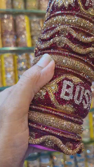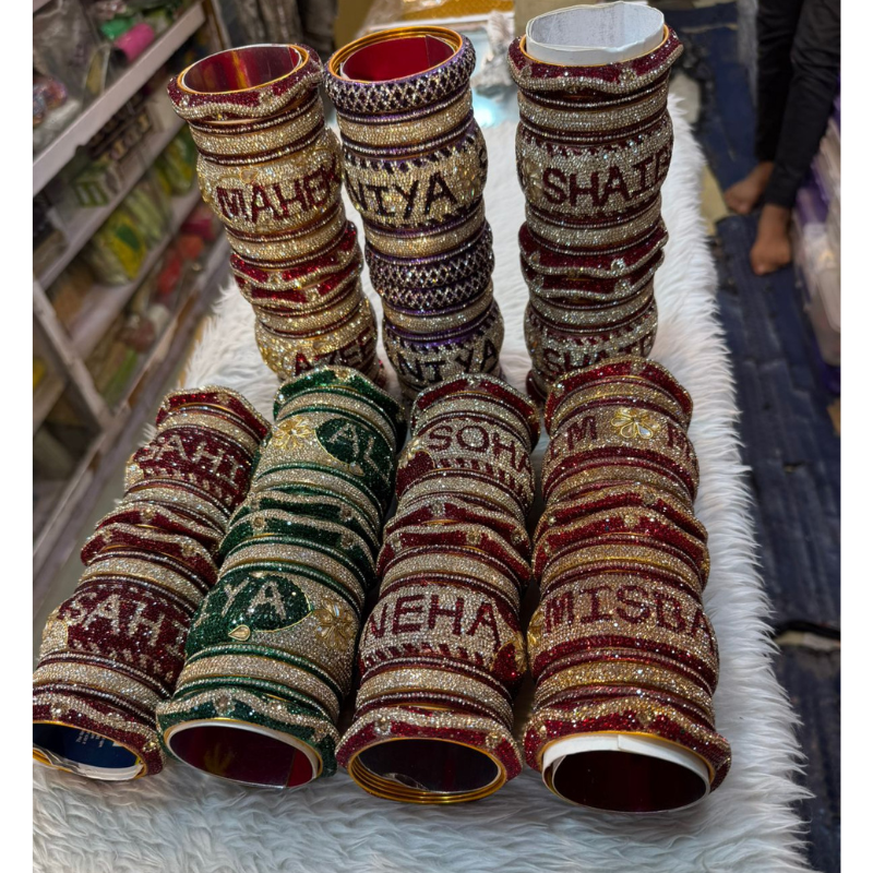 Beautiful handmade bridal chooda, personalized with bride & groom ke naam. Premium quality, stunning stone & zari work — perfect for your big day!